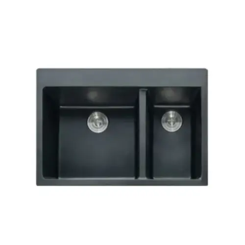 Large Rectangle 50/50 Equal Double Bowl Topmount Counter Quartz Composite Sink For Kitchen